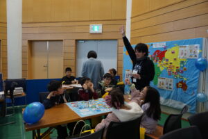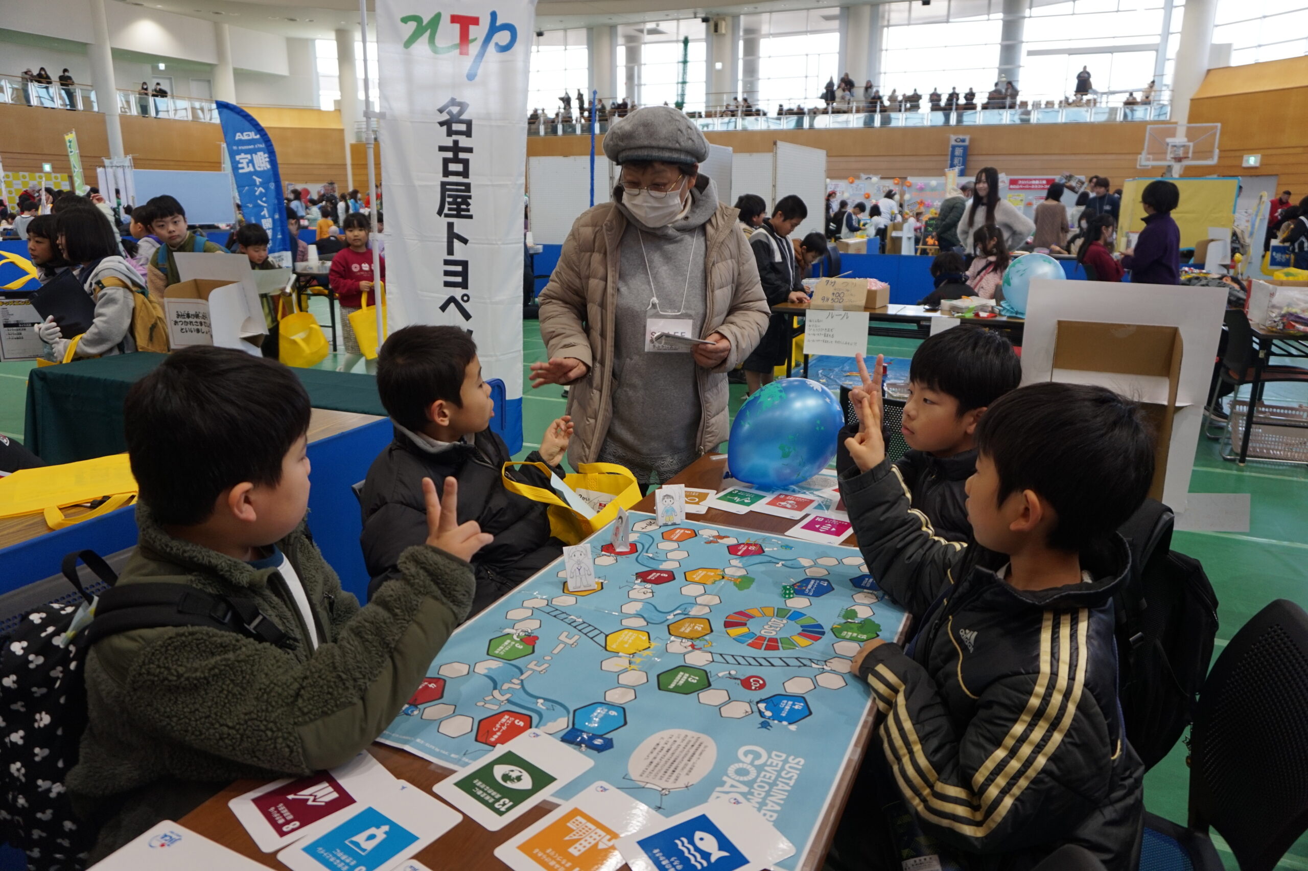 国際交流協会では、JICA なごや地球ひろば(JICA中部)の職員と遊びのブースを出店し「SDGsすごろく」で遊びながら2030年までに達成させたい『17の目標』を学び、すごろくを進め止まったマスの目標をみんなで考えることができました。また、北名古屋市在住の外国人の出身国のあいさつを学んだりしました。